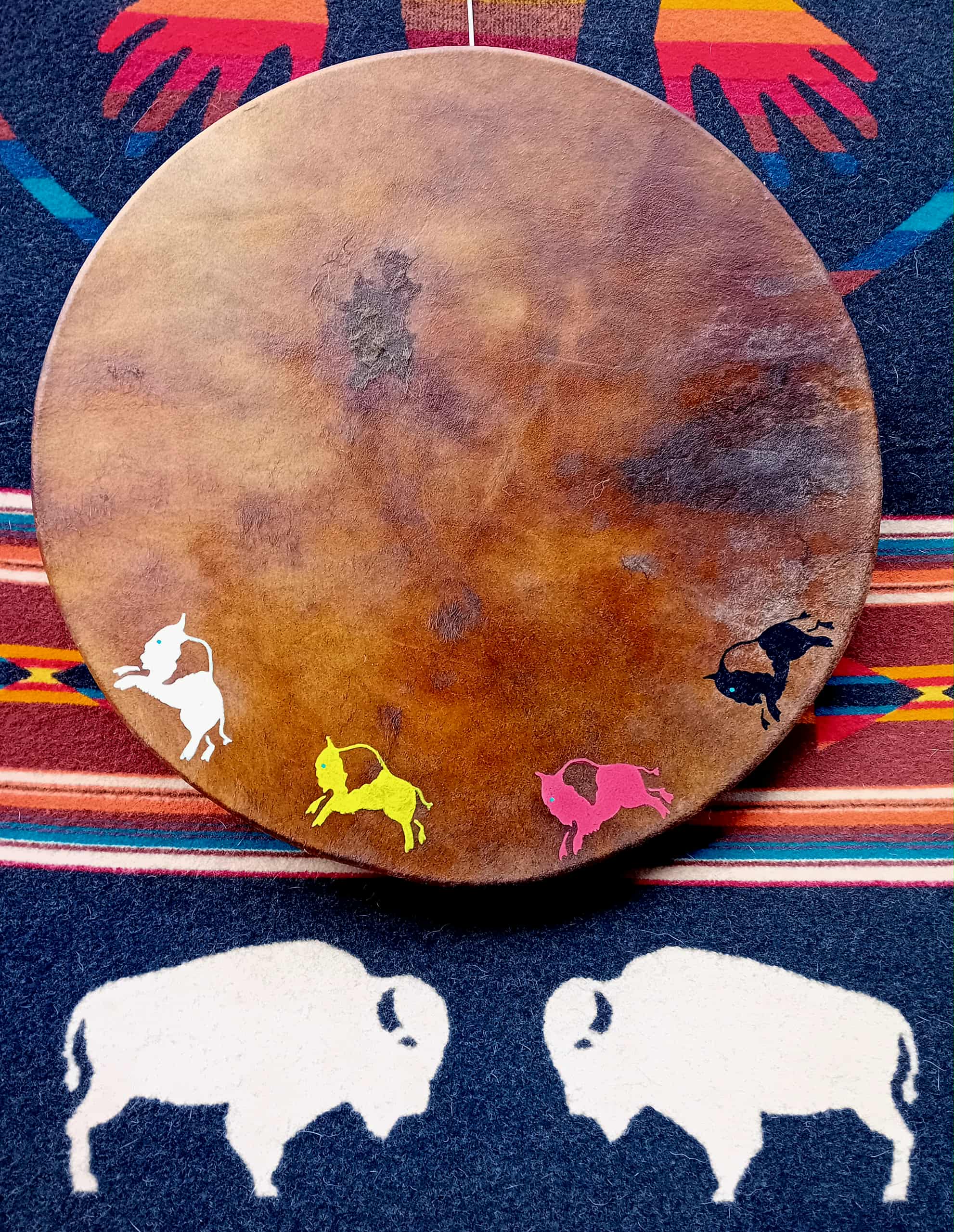 We are very thankfull that Ancient Traditions left us these Instruments Full of Wonder. Our Drums are handmade (using only natural materials) with Love and Care. Every Creation is a one of a kind Key to other Dimensions in the Spiritual Realm. Are you ready to explore other levels of your consciousnes guided by the Buffalo Medicine ? Be aware these are Drums that go deep and will nail you to the Earth Mother… .