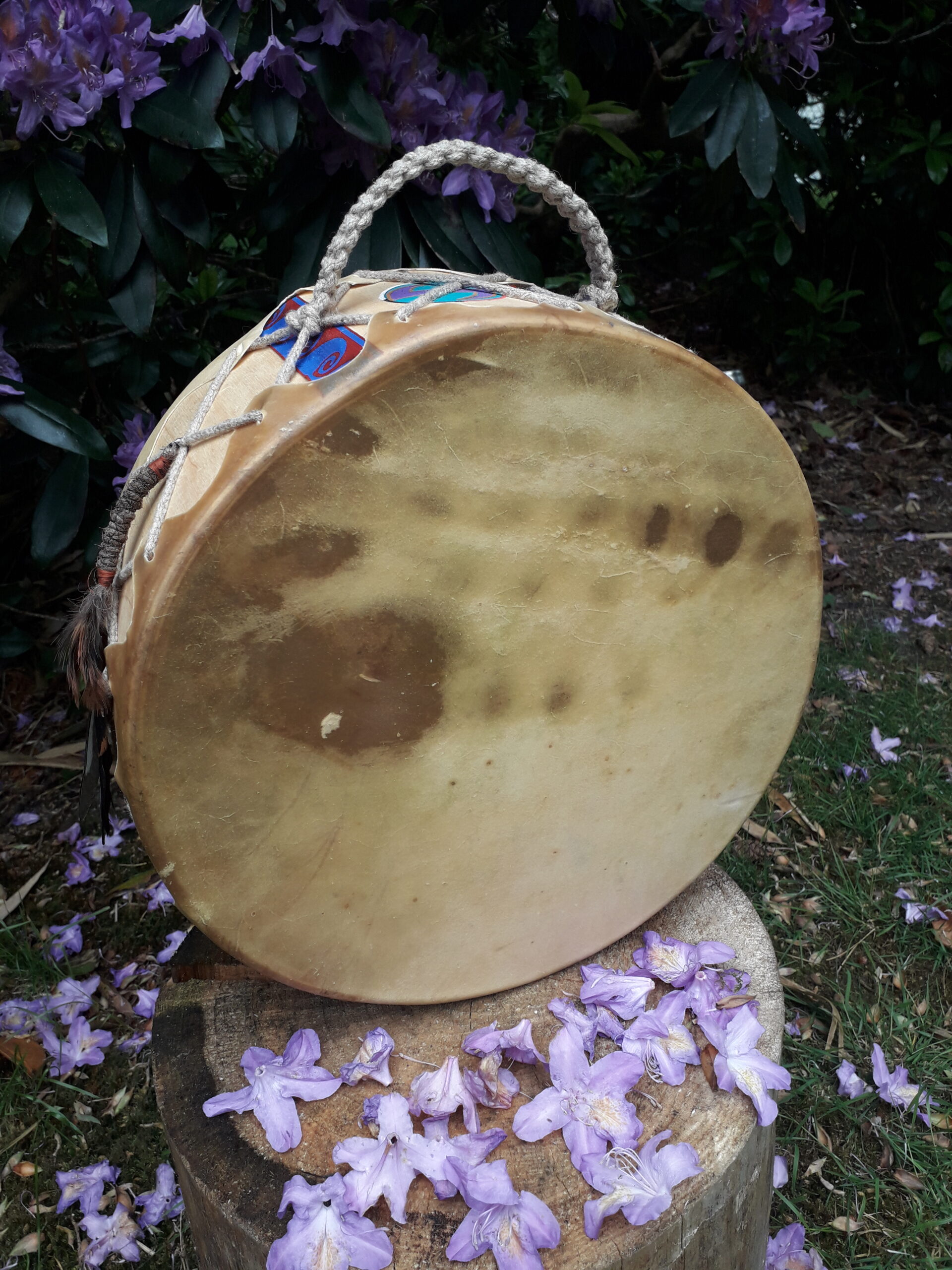 Double sided Cow hide Drum measures 33×13 cm. The perfect Partner for your Ceremonies, light weight and resistant to humidity even during the Sweatlodge Ceremony.