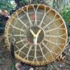 This Unique Horse hide Drum measures 49 x 6cm. Laced with Hemp rope and a wooden handle (with painted Medicine Wheel symbol) for the Natural Touch.