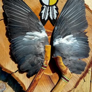 A bundle of Feathers (the Winged Ones are the Messengers of Creator) wrapped in Buffalo (extra Power) hair gives this one of a kind Instrument all that’s needed to do some Great Energetical Work.