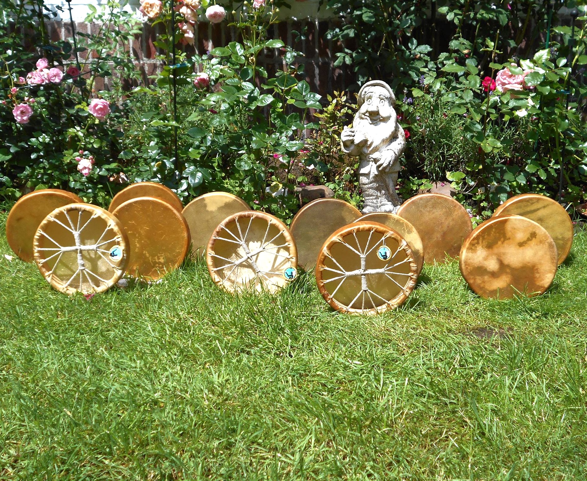These Cow hide Drums are made for children, the Little Warriors. Ofcourse these instruments have a much higher and shorter pitch then their bigger brothers but they do sound amazingly well.